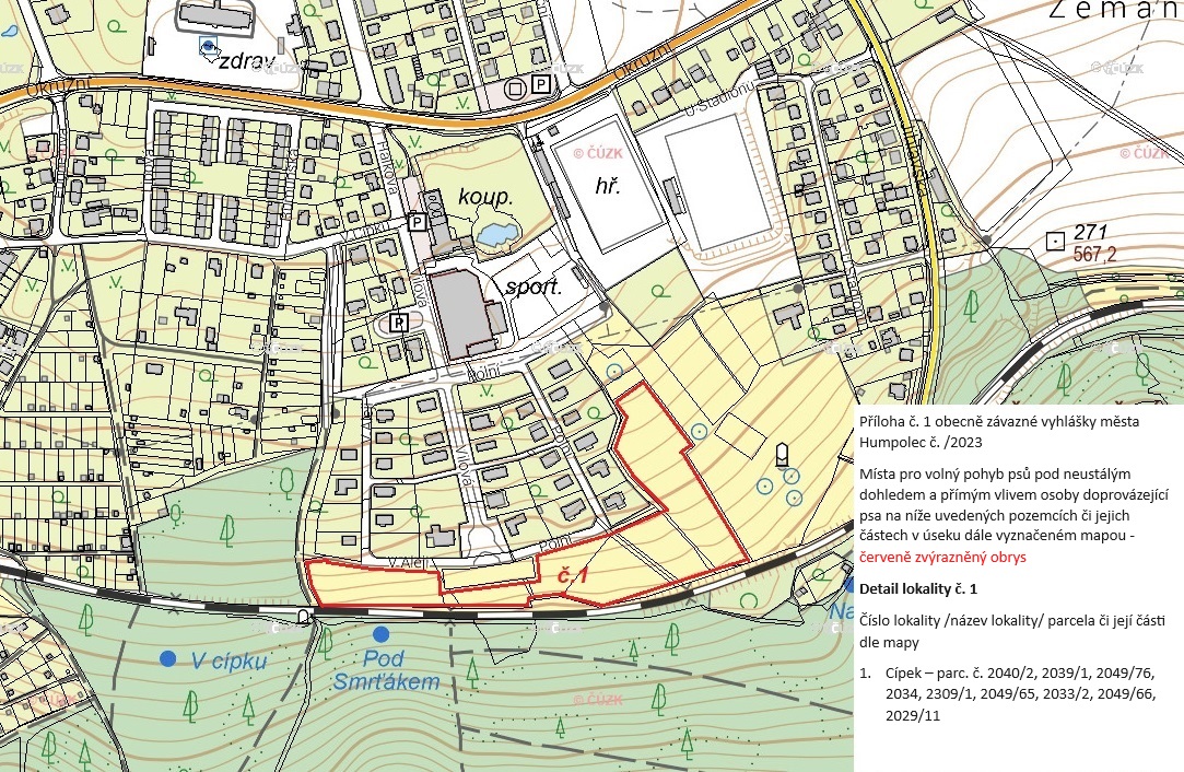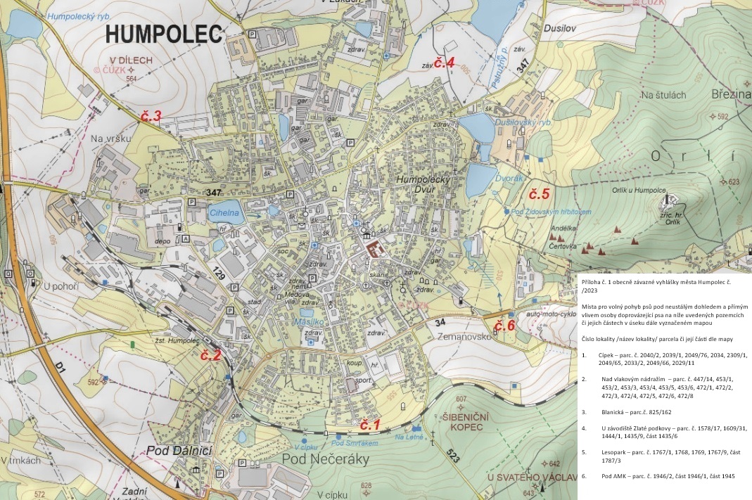 příloha č.1 (Veřejná) Příloha - volný pohyb psů pod dozorem lokalita1 (Veřejná) Příloha - volný pohyb psů pod dozorem lokalita 2 (Veřejná) Příloha - volný pohyb psů pod dozorem lokalita3 (Veřejná) Příloha - volný pohyb psů pod dozorem lokalita4 (Veřejná) Příloha - volný pohyb psů pod dozorem lokalita5 (Veřejná) Příloha - volný pohyb psů pod dozorem lokalita 6 (Veřejná) Příloha - návrh vyhlášky (Veřejná) |