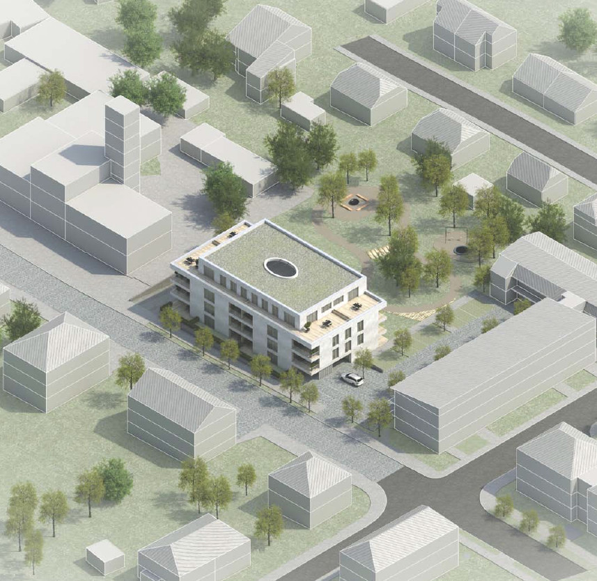 Návrh variantních řešení záměru realizace výstavby bytového domu Spirála v Humpolci.